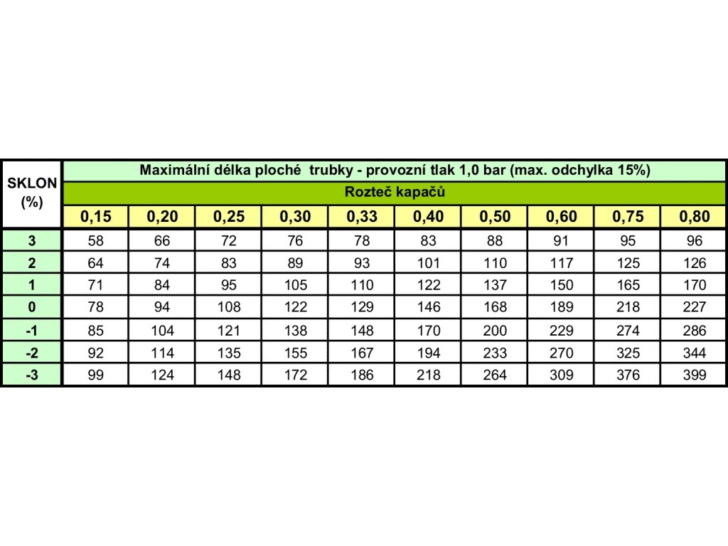 Plochá kapkovací hadice o průměru 17 mm, síla stěny 0,2 mm a rozteč kapačů 0,30 m